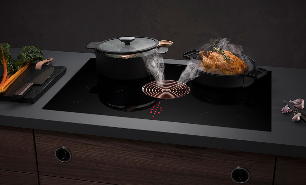 Das neue BORA X Pure besticht durch ein besonders breites Kochfeld mit markanter Einströmdüse. Die Flächeninduktion erlaubt maximale Flexibilität bei der Anordnung der Töpfe. Dabei ist das Kompaktsystem mit seiner innovativen sControl Touchbedienung minimalistisch, flächenbündig, hochelegant, extrem geräuscharm und maximal intuitiv.