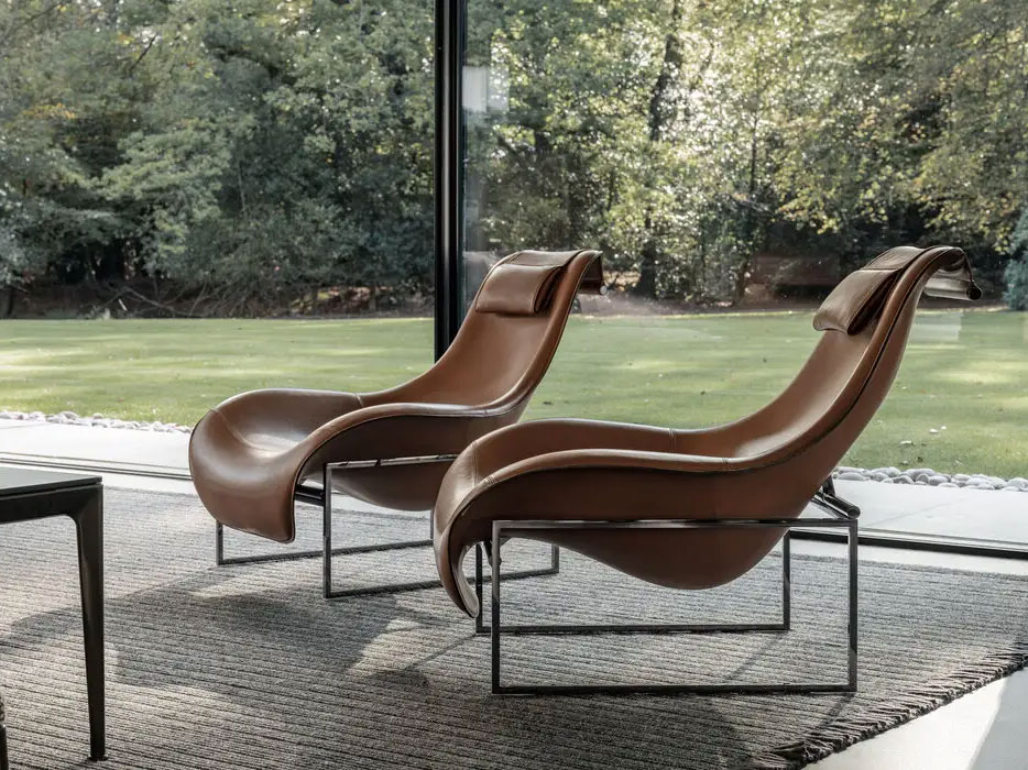 Die Grundlage bildet eine lange Entwicklungs- und Experimentierphase rund um die Fertigungstechnologie von thermogeformtem Leder (Cuoio termoformato). Ausgangspunkt ist eine Kunststoffschale, die in eine Form eingesetzt und im Verfahren der Kaltverschäumung mit Polyurethan ummantelt wird. Das Ergebnis: eine Konstruktion, die Elastizität, Stabilität und spürbaren Sitzkomfort miteinander verbindet.
