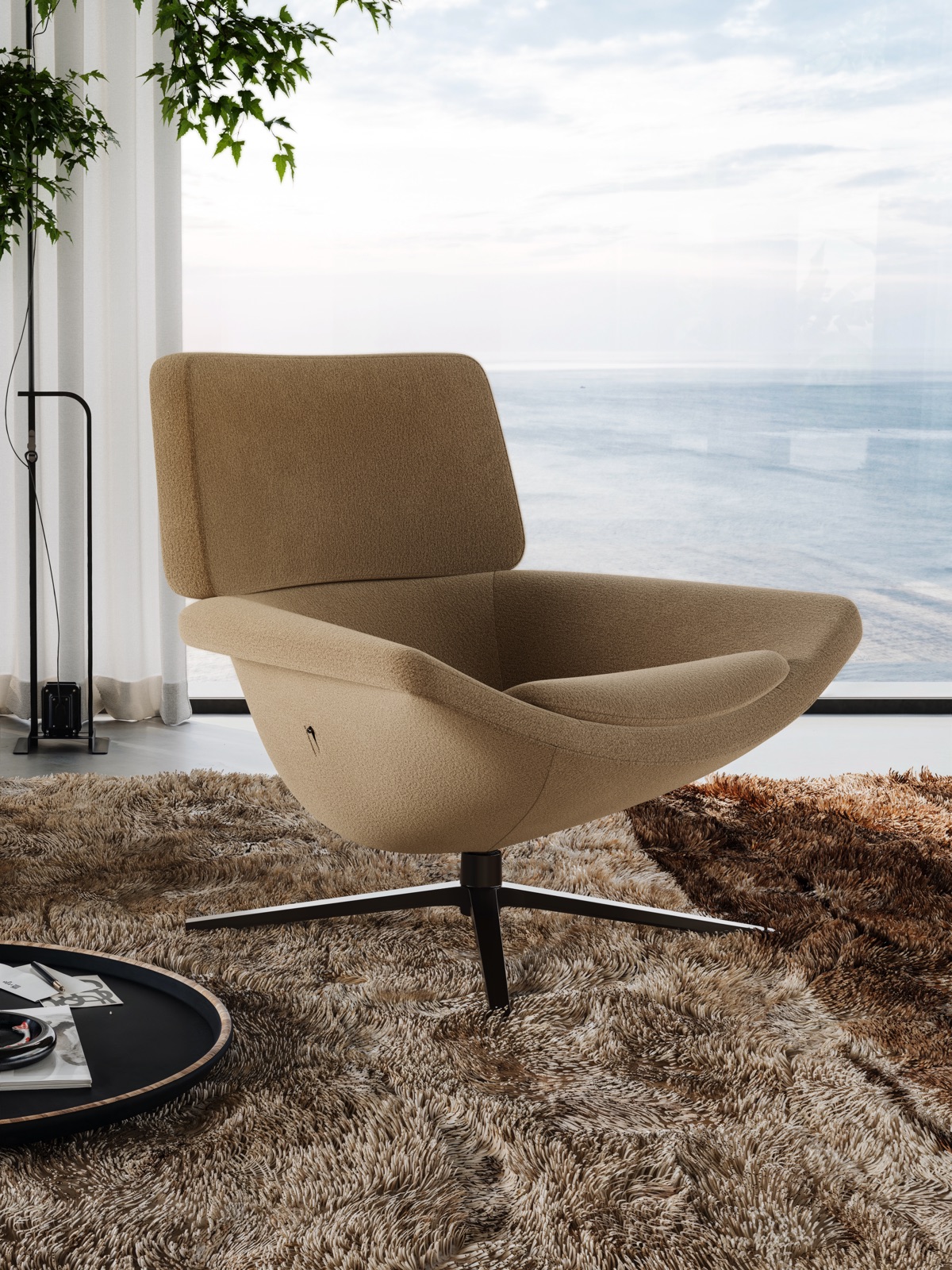 Mit Metropolitan Relax präsentiert sich die jüngste Weiterentwicklung dieser ikonischen Familie. Dank des „Tilt“-Mechanismus mit Wipp- und Drehfunktion folgt der Sessel fließend den natürlichen Bewegungen des Körpers und bietet in jeder Position zuverlässigen Halt. Die neu gestaltete obere Rückenlehne sowie die Kopfstütze unterstützen Kopf und Oberkörper optimal – für spürbar mehr Entspannung.