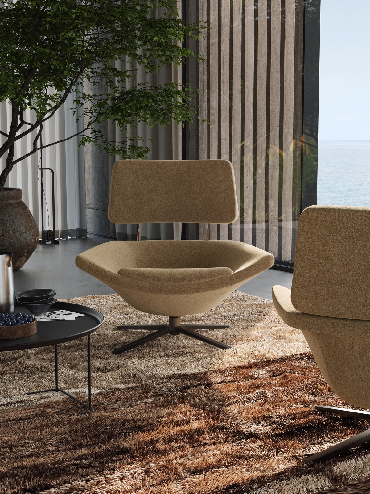Erhältlich mit Aluminiumgestell und einer großen Auswahl an Stoff- und Lederbezügen, passt Metropolitan Relax gleichermaßen in anspruchsvolle Wohnbereiche wie auch in Luxus-Hospitality- und Executive-Office-Umgebungen.