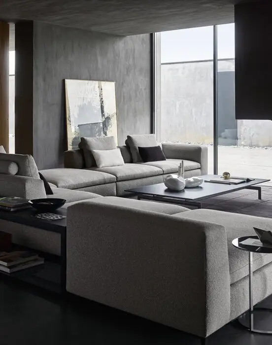Das Sitzsystem Michel Club von B&B Italia, entworfen von Antonio Citterio (2015), verbindet traditionelle Eleganz mit einer zeitgemäßen, klaren Formensprache. Als Weiterentwicklung von Michel umfasst es lineare Sofas, modulare Elemente und Poufs – für eine große Bandbreite an Konfigurationen, vom großzügigen Wohnlandschaft-Setup bis zur kompakten Lösung.