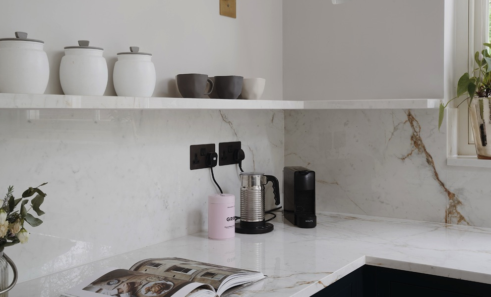 Jetstone bietet Küchenarbeitsplatten aus Mineralstein meist mit einer glänzenden (polierten) Oberfläche an. Eine matte (Satin) Oberfläche ist ebenfalls beliebt. Quarzstein verleiht Arbeitsplatten eine robuste Optik, ist jedoch anfangs fleckempfindlich.
