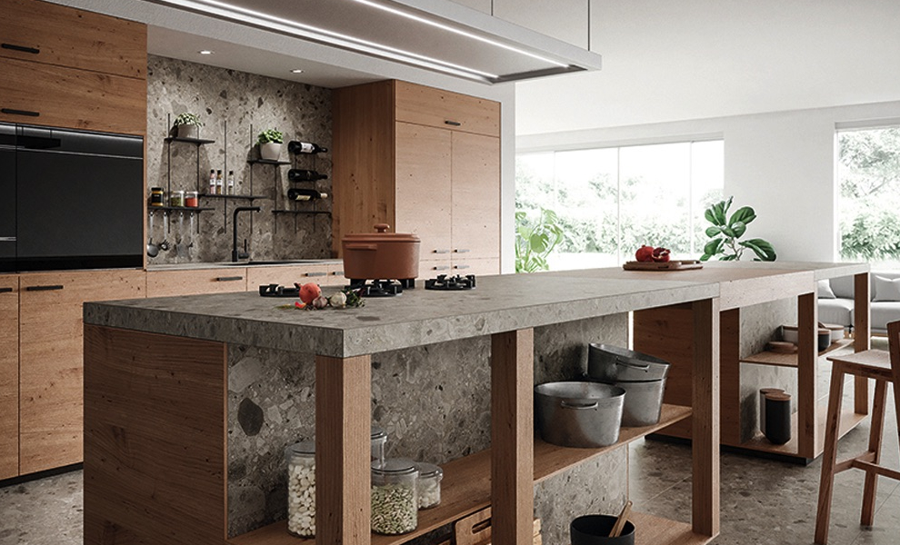 Dekton ist ein modernes Material für Küchenarbeitsplatten, entwickelt von Cosentino, bekannt durch Silestone. Die Farbpalette umfasst sowohl einfarbige Designs als auch Nachbildungen von Naturstein und Beton und wird stetig erweitert. Dekton ähnelt Keramik und wird durch einen Herstellungsprozess produziert, der Techniken aus der Glas- und Quarzstein-Industrie nutzt. Dabei entsteht unter hohem Druck und hohen Temperaturen eine besonders dichte Masse.