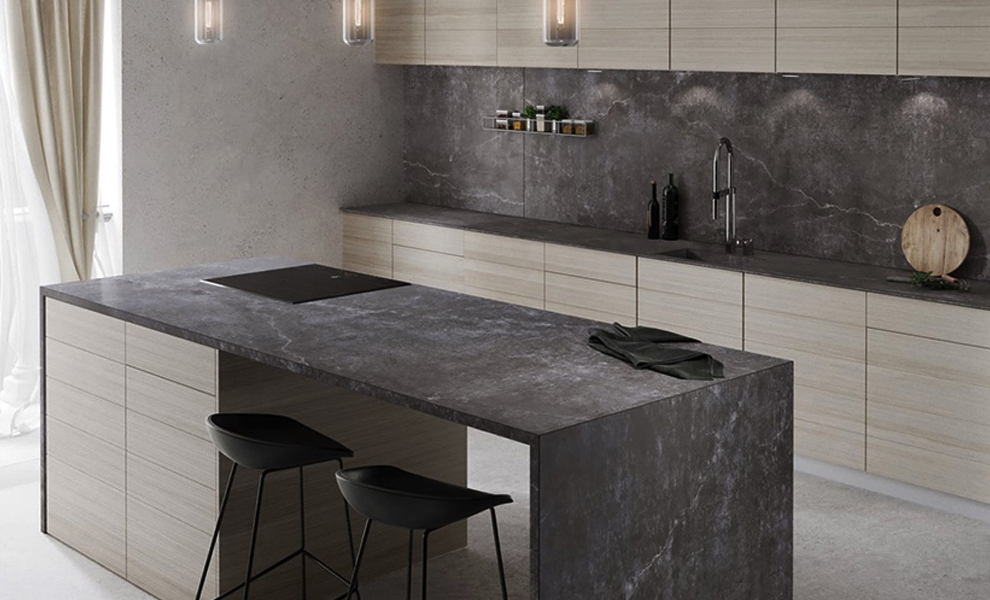Keramik ist ein industriell hergestelltes Produkt aus Ton, der unter hohem Druck gepresst und bei hohen Temperaturen gebrannt wird. Es wird in verschiedenen Abmessungen geliefert und eignet sich ideal für maßgefertigte Küchenarbeitsplatten. Da Keramik aus natürlichen Stoffen besteht, können Farb- und Strukturunterschiede auftreten.